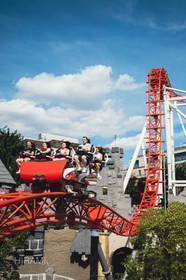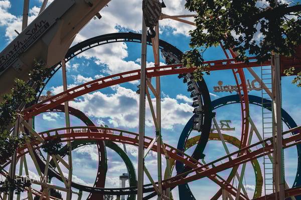 The newest addition to the roller coaster setup: Wiener Looping made by Mack Rides! A short but cool beauty in red
