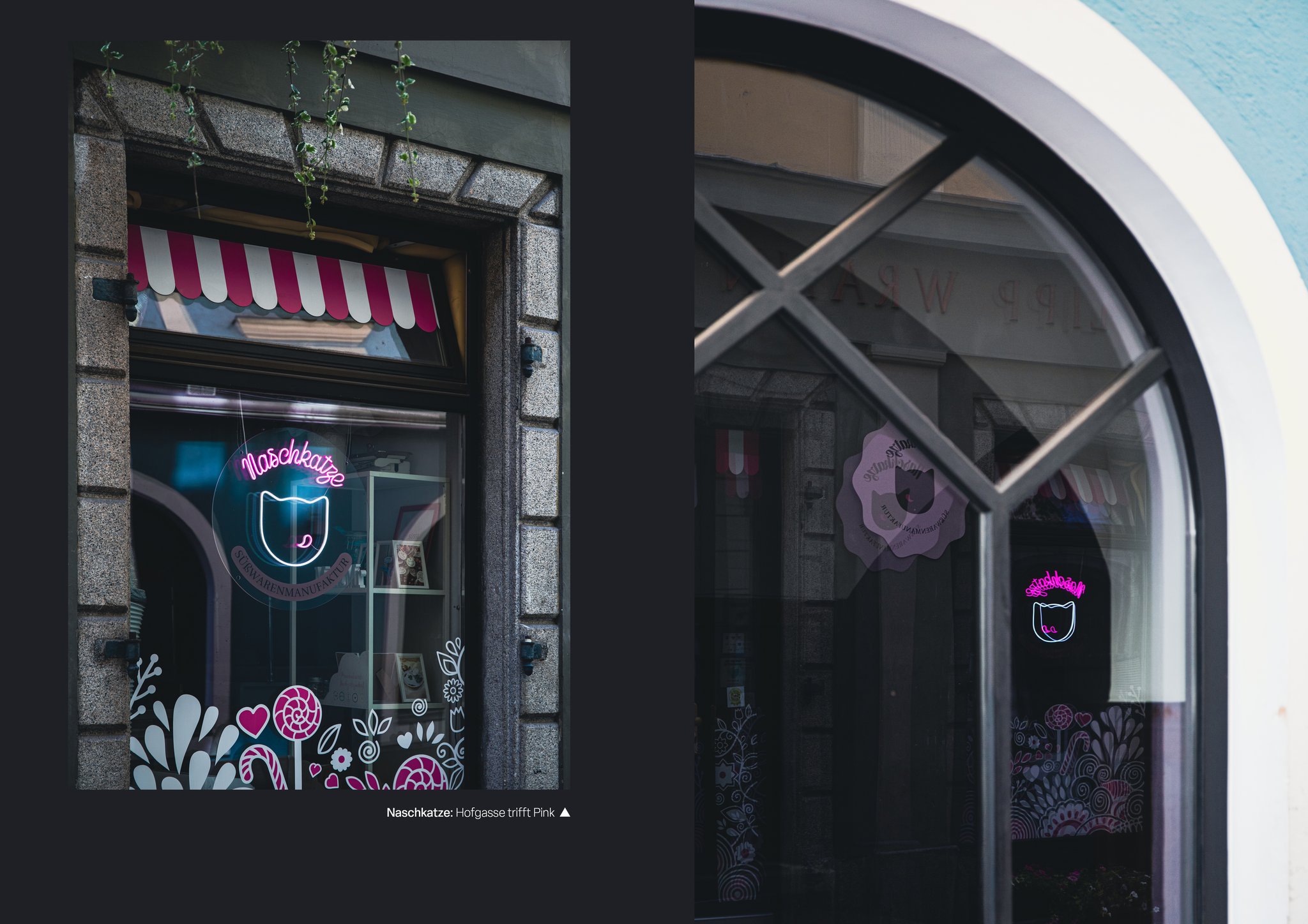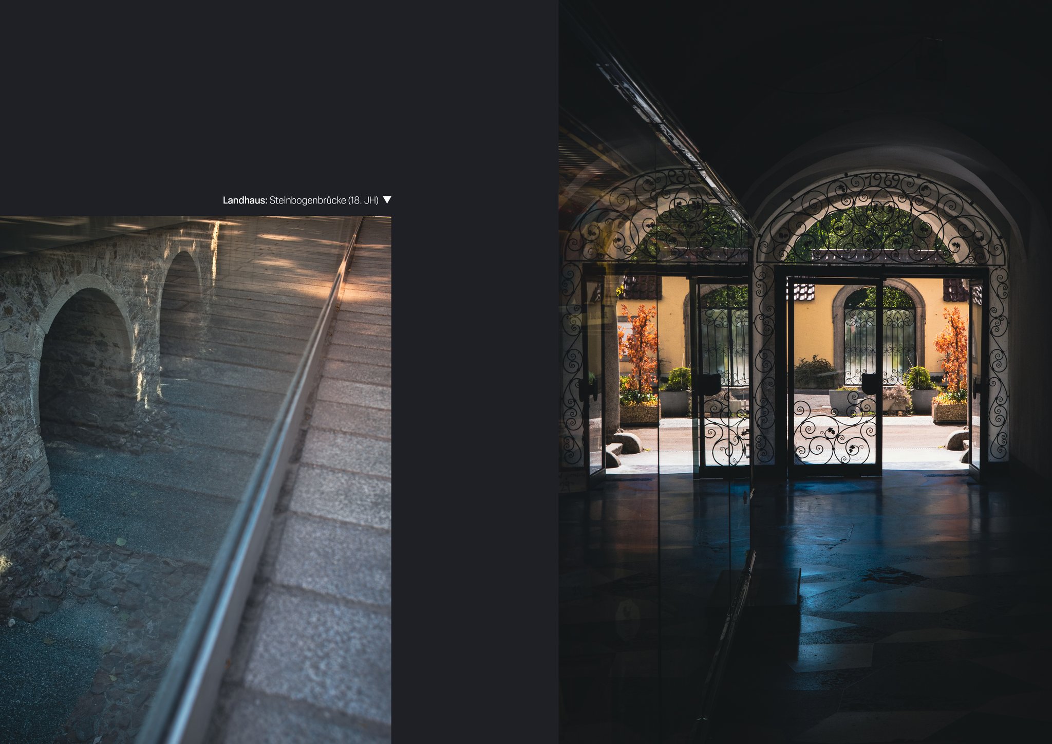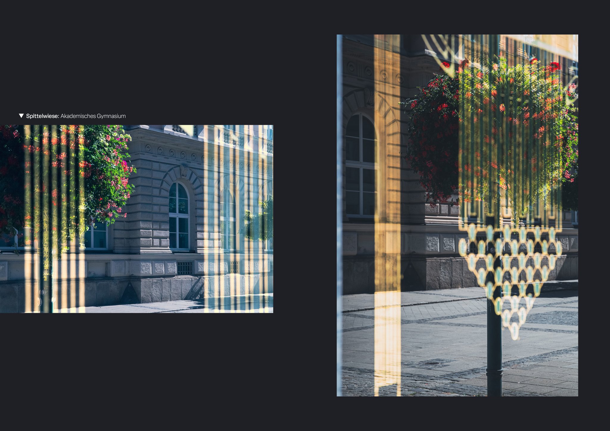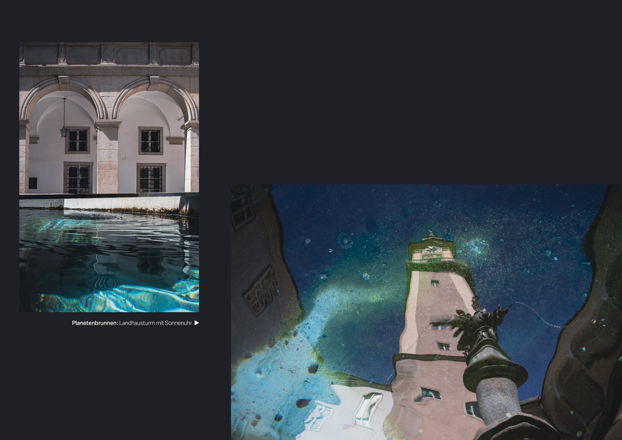 Ein Blick auf die Stadt Linz durch Reflektionen - auf Glas, Wasser und anderen spiegelnden Oberflächen